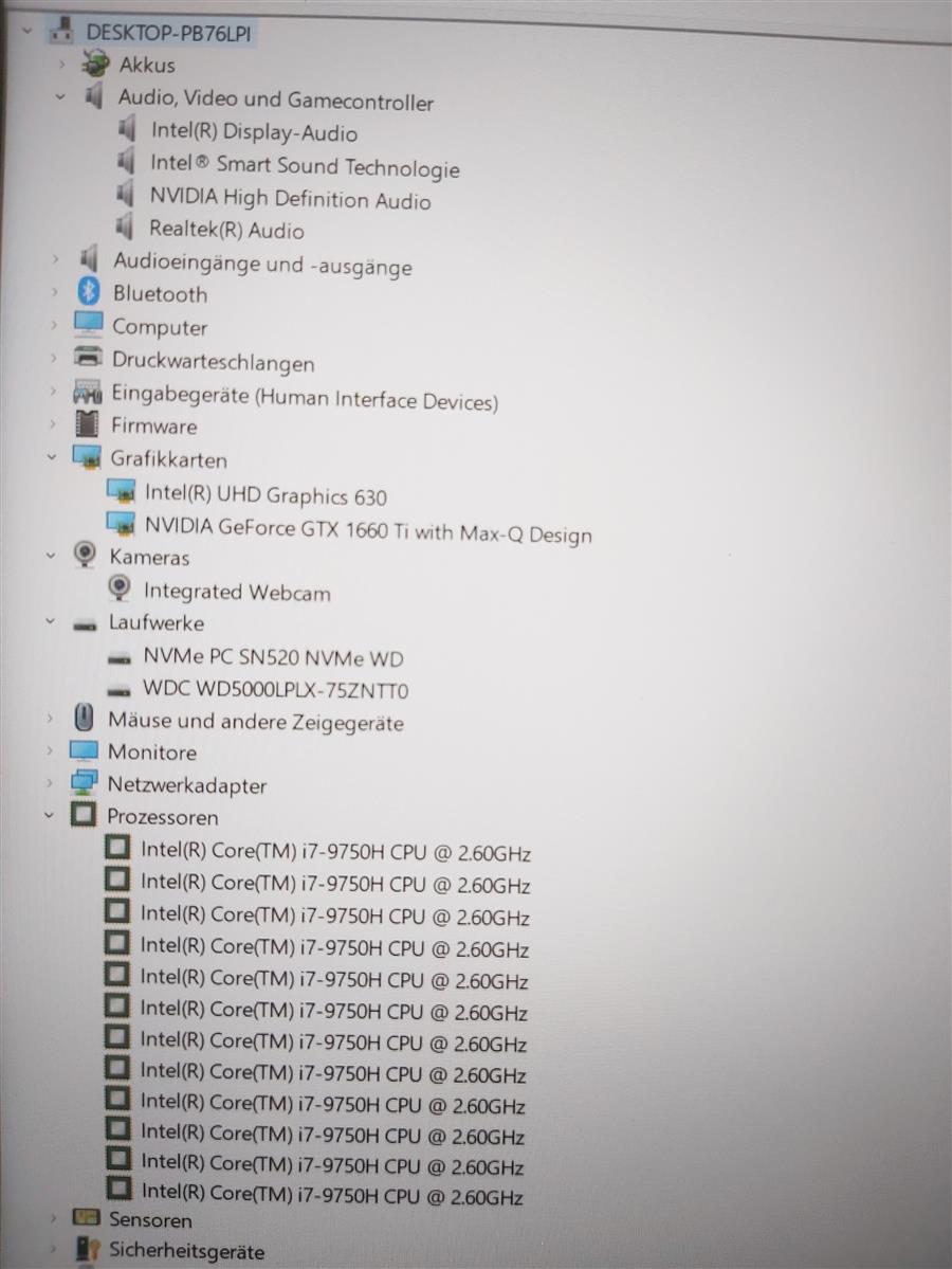 – Intel Core i7-9750H 2,60GHz Six Core Prozessor, Turbo bis 4,50GHz