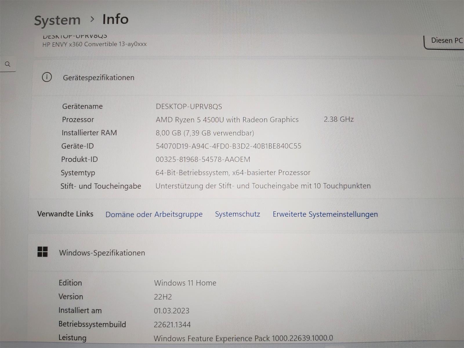 – AMD Ryzen 5 4500U 2,38GHz Six Core Prozessor, Turbo bis zu 4,00GHz