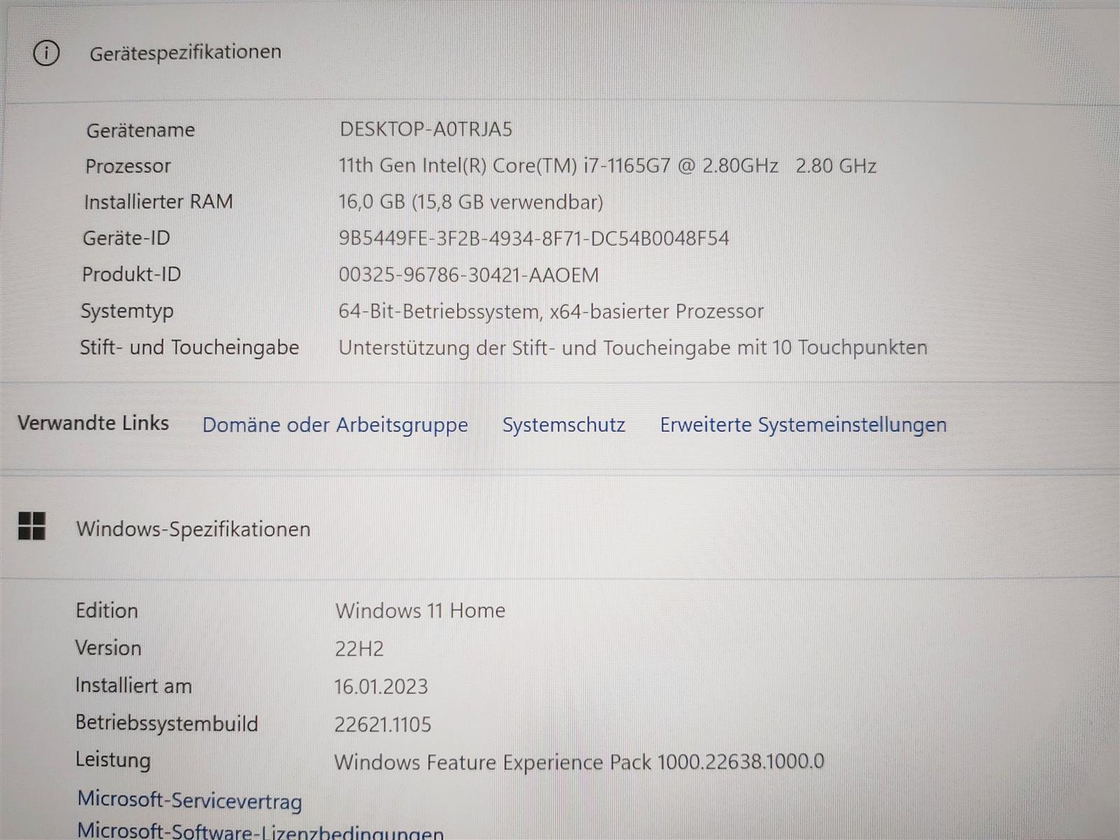 – Windows 11 Home 64bit, aktiviert inkl. Lizenz & Updates