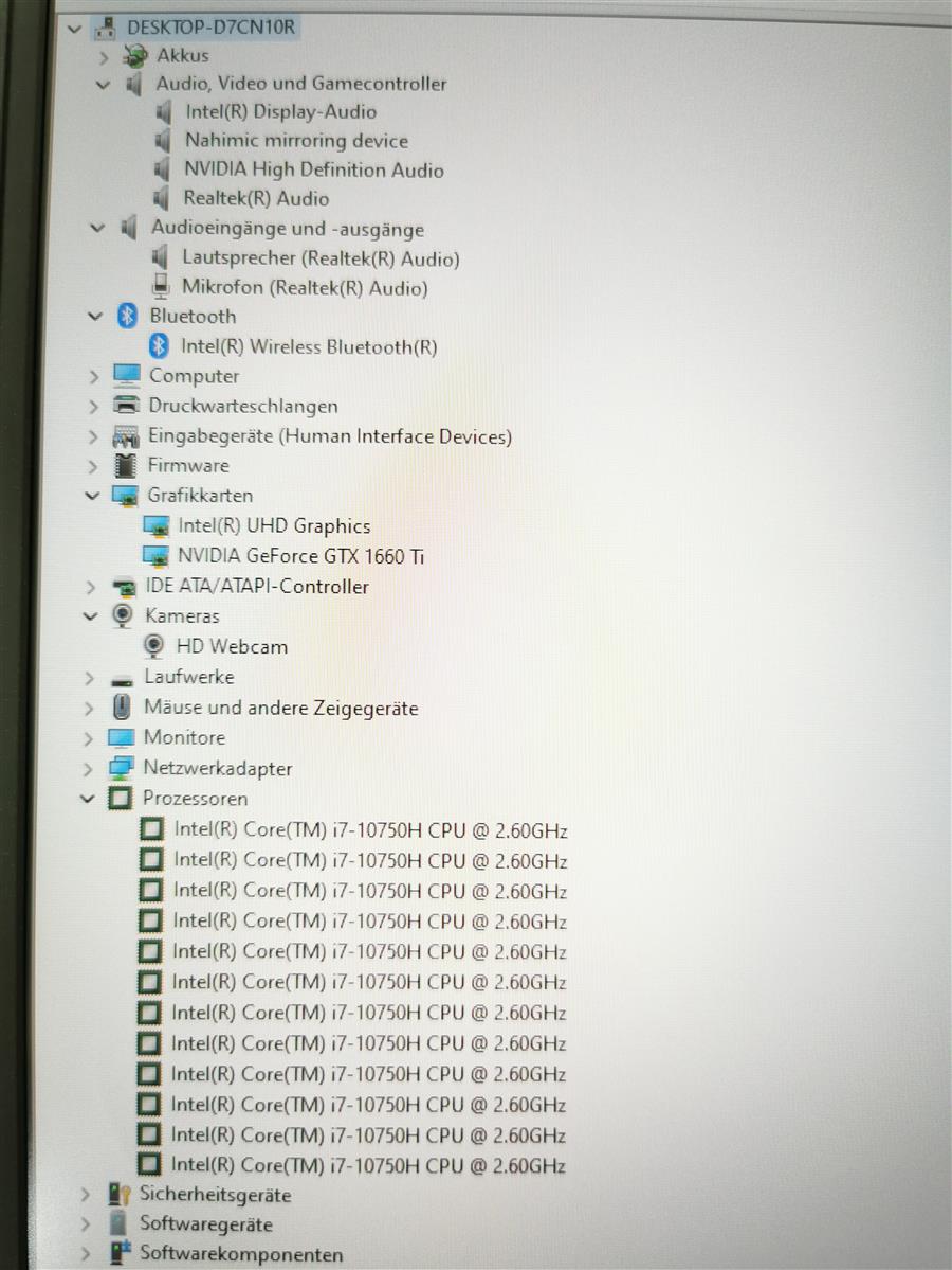 – Intel Core i7-10750H 6x 2,60GHz Prozessor der 10. Generation, Turbo bis zu 5,00GHz