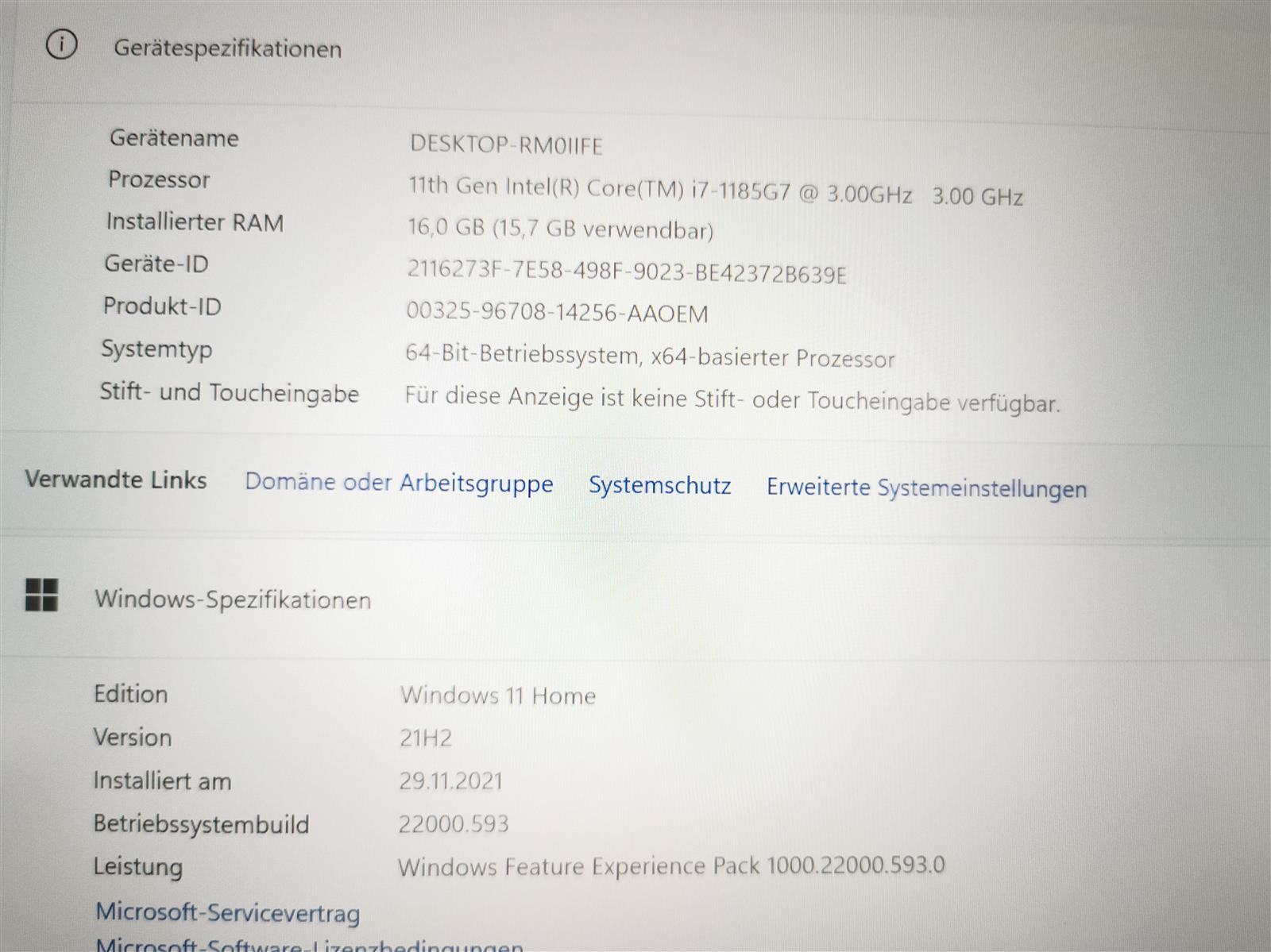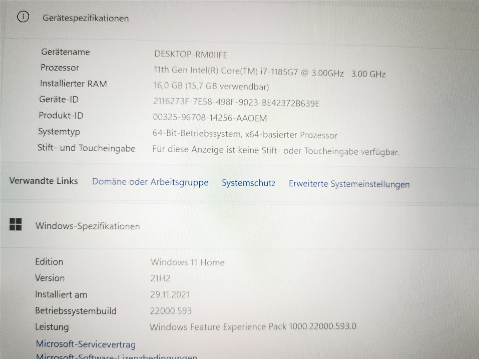 – Windows 11 Home 64bit, aktiviert inkl. Lizenz & Updates