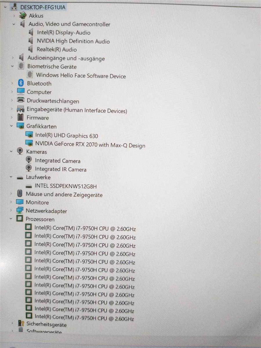 – Intel Core i7-9750H 2,60 Six Core Prozessor der 10. Generation, Turbo bis zu 4,50GHz